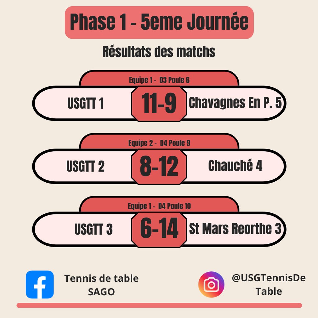 - L'équipe 1 remporte 11-9 face à Chavagnes En Paillers 5